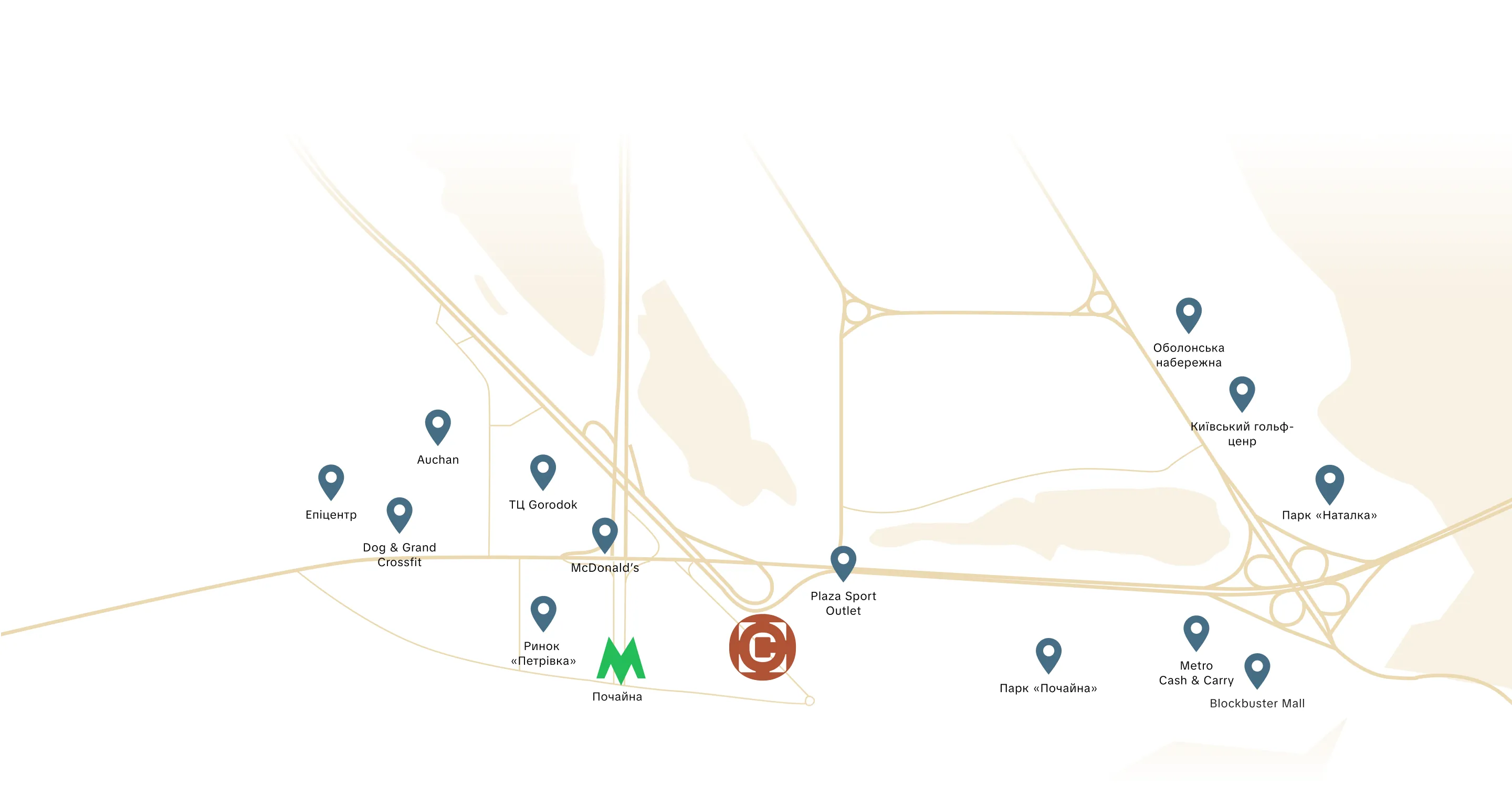 - ти біля станції метро «Почайна»;